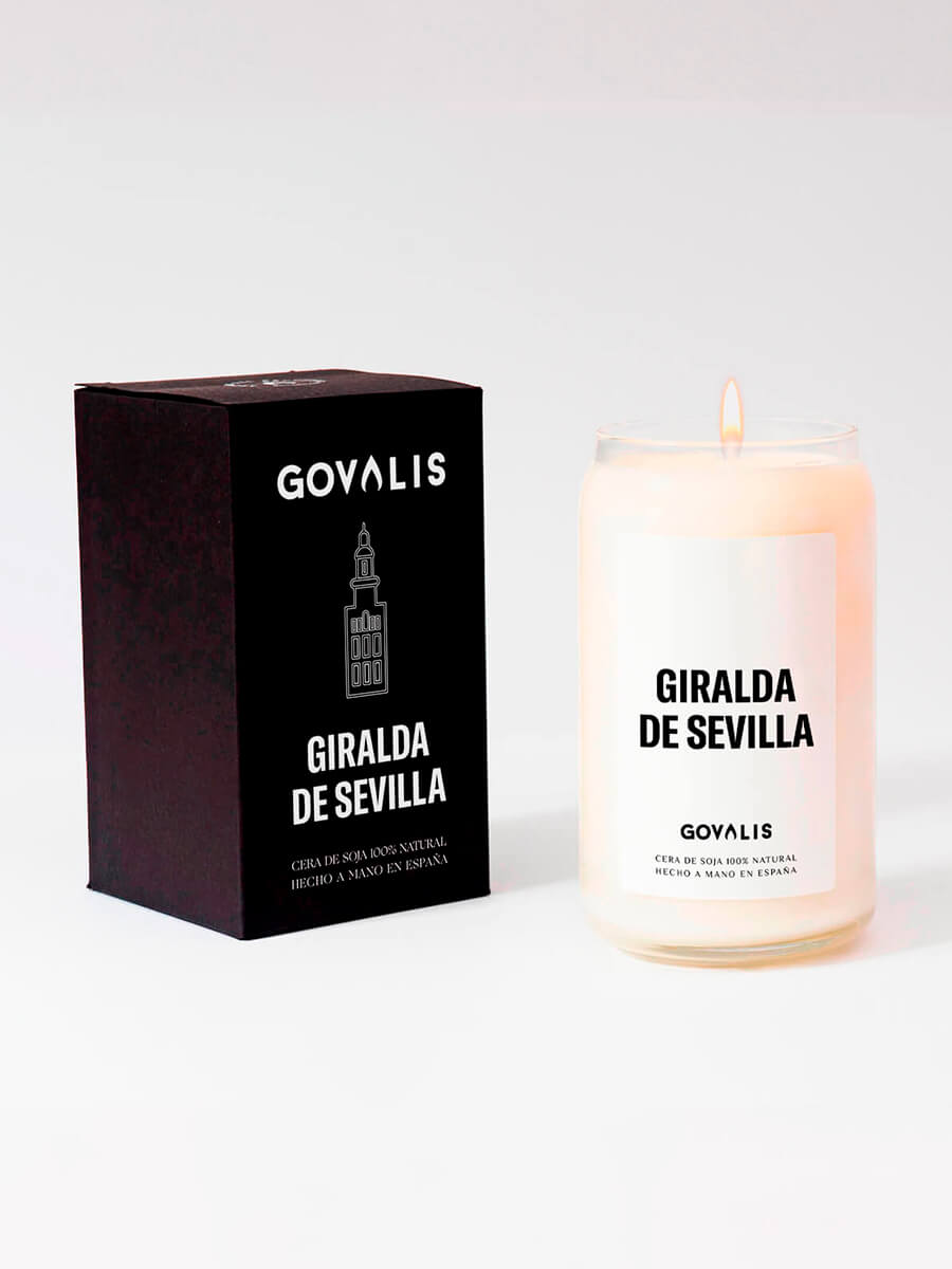 Las velas aromáticas y decorativas GOVALIS están elaboradas en España, de manera artesanal con cera de coco y soja 100% natural. Cada una de ellas contiene un aroma diferente, característico del lugar, monumento o recuerdo. El tiempo de combustión estimado es de 90 a 110 horas.